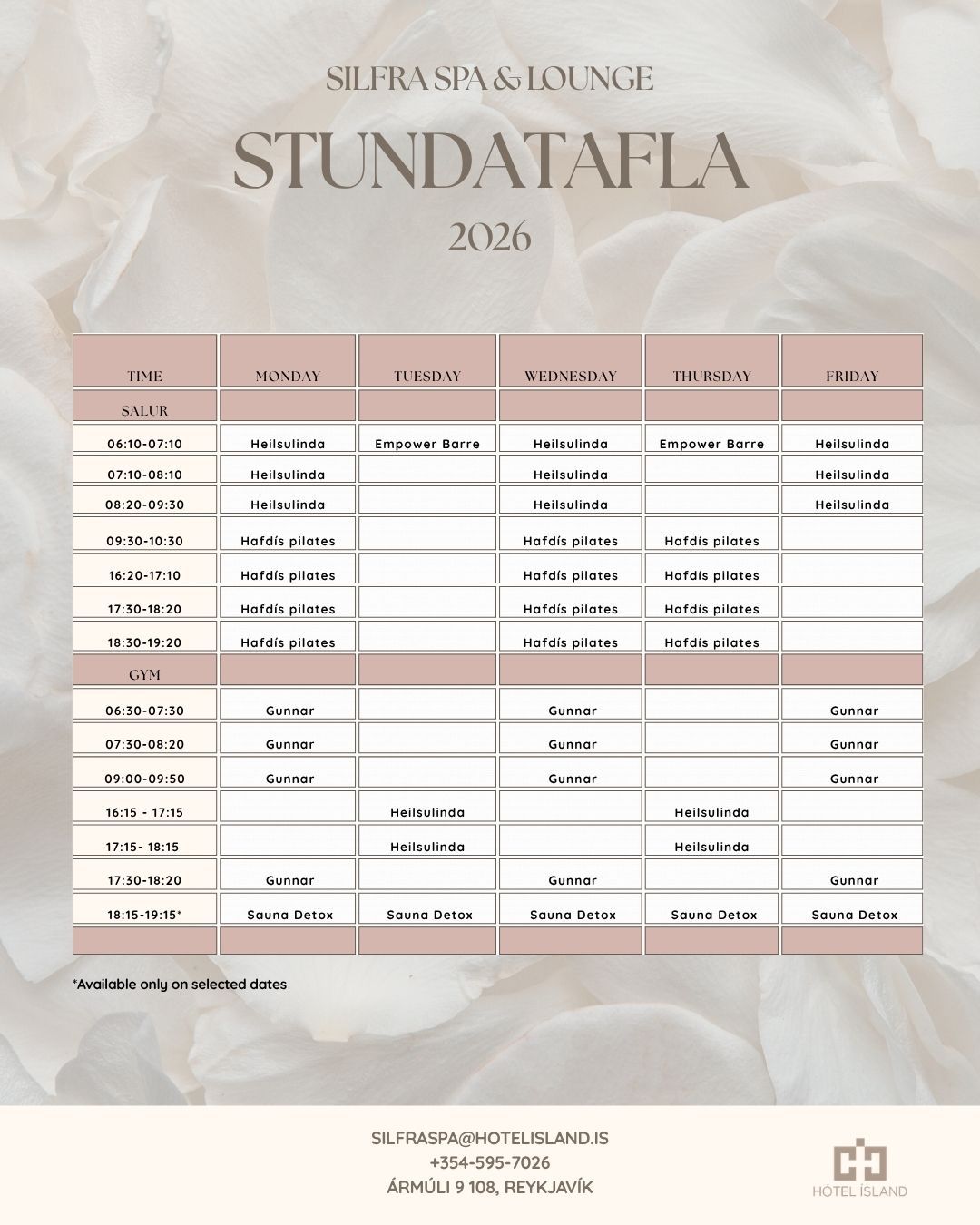 Silfra Spa Group | Monday - Wednesday - Friday | 6:10 / 7:10 / 8:30